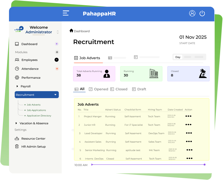 A smart HR software that automates payroll, leave, attendance, recruitment and appraisals for organisations