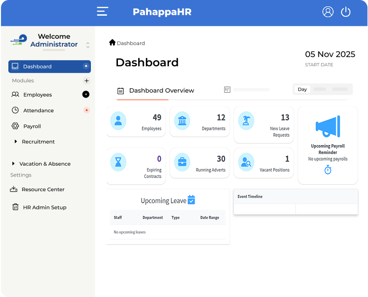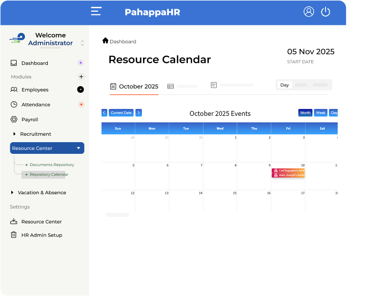 Easily see team availability and manage resources. The Resource Calendar provides a clear view of all events, meetings, and leave schedules. This helps HR teams and managers plan more effectively.