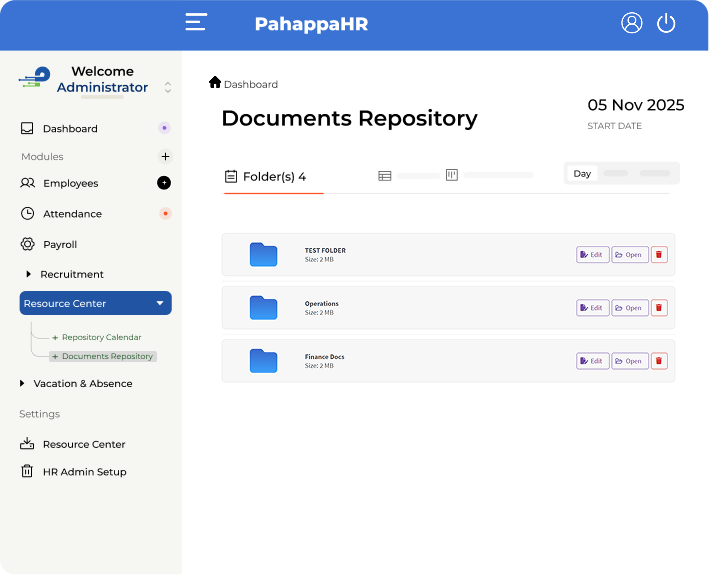 Stop searching through endless folders. The Document Repository is a secure space where you can store, access, and easily share employee records, policies, and contracts.
